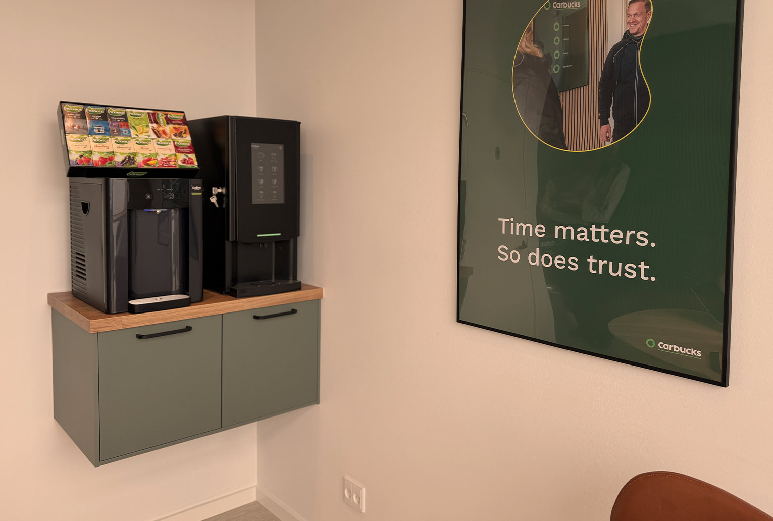 Mens vi reparerer din bil, kan du slappe af i vores lounge med gratis kaffe, wi-fi og tv. Her er der plads til både arbejde og en velfortjent pause – eller du kan tage en tur i de omkringliggende butikker, mens vi klarer reparationen.