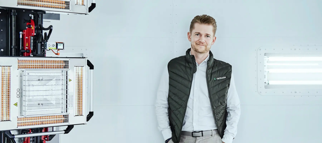 Grundlægger af Carbucks, Bjarke Marcell, på sit moderne autoværksted.